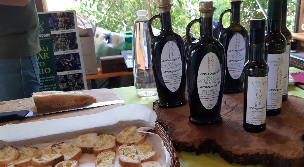 Le nostre varietà di olivi sono principalmente la Rosciola, un olivo tipico del nostro territorio, e il leccino. Il primo produce un olio dal profumo di erbe dei campi da un amaro intenso, dai sentori di carciofo e mandorla, con una piccantezza media che persiste al palato per qualche minuto; mentre il leccino si caratterizza per essere un olio molto equilibrato tra i sentori dolce e fruttato con lievi sentori di mandorla.